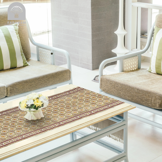 Artisanal Table Linens. Our handcrafted tablecloths are made from 100% cotton, featuring symbolic Persian patterns applied with the traditional Ghalamkar technique. They are eco-friendly, colorfast, and easy to wash—perfect for elegant, everyday dining.